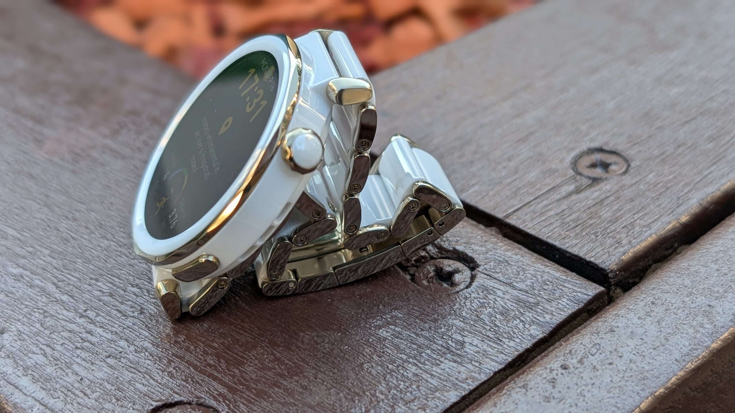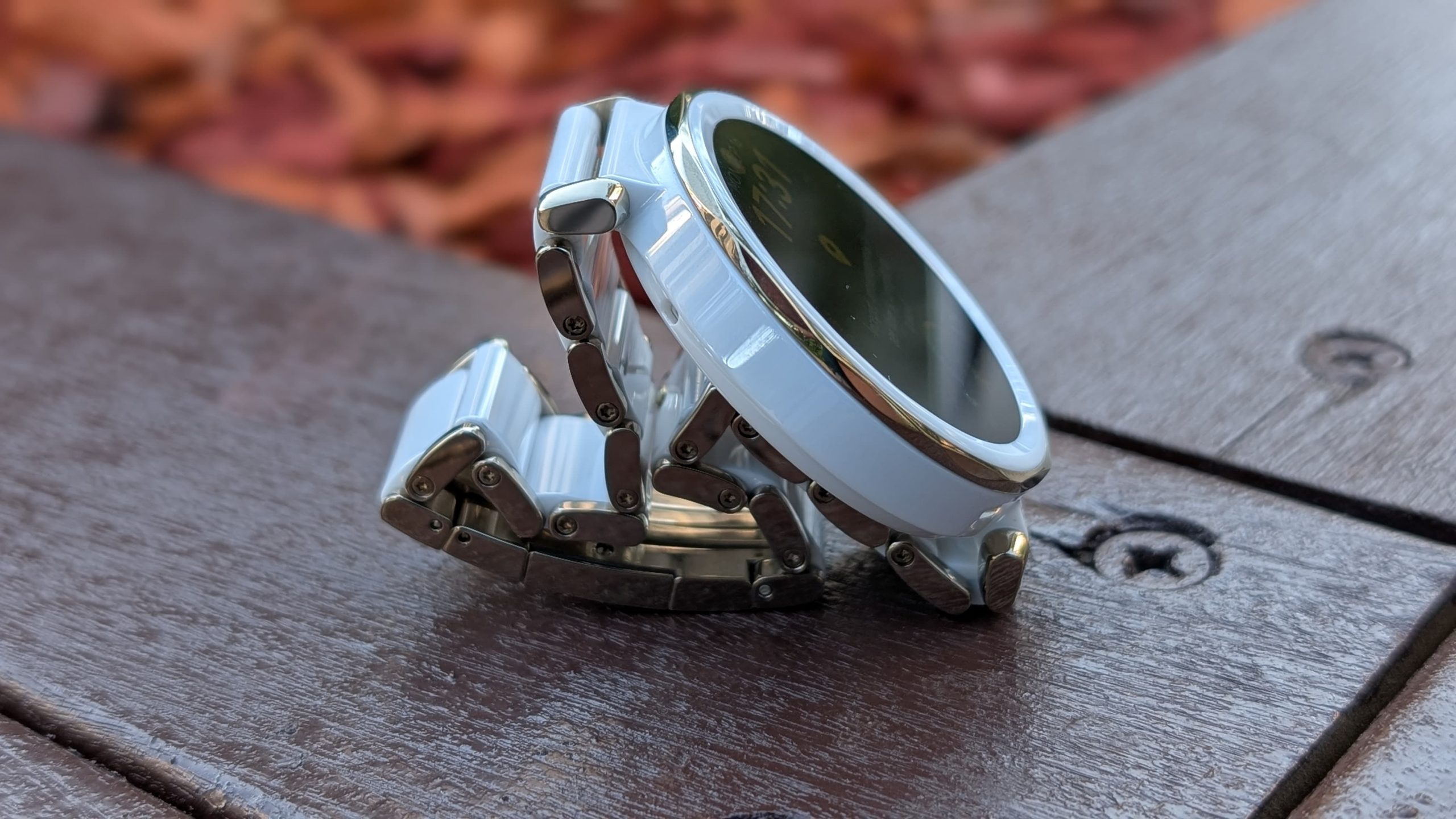 Materialele nu sunt doar estetice. Titanul oferă o rezistență excelentă la coroziune și zgârieturi, fiind perfect pentru cei ce își doresc un smartwatch care să reziste și în condiții mai dure. În schimb, ceramica albă este extrem de rezistentă la uzură și păstrează un aspect premium în timp, fără să își piardă strălucirea.