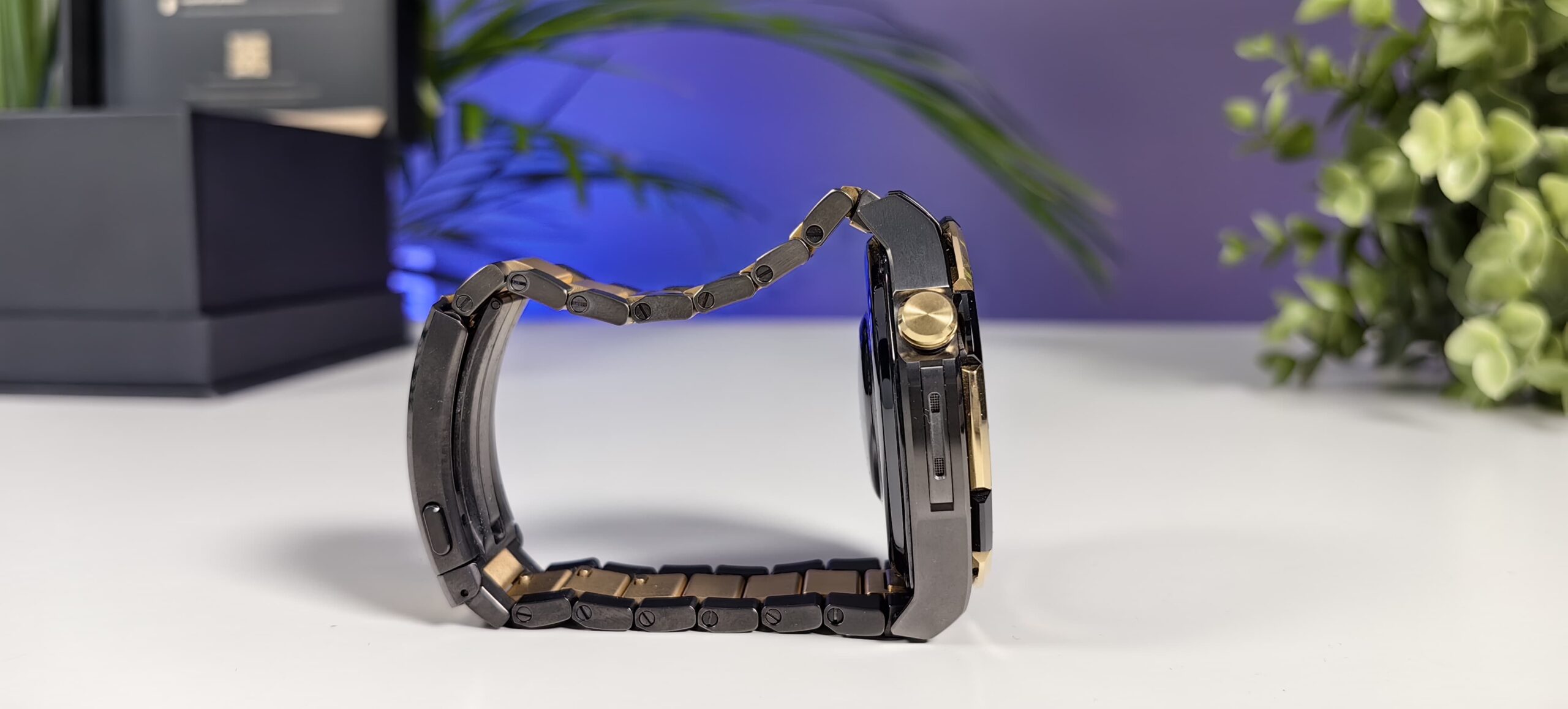 Și avem așa: smartwatch-ul, care arată într-un mare fel, un cartonaș cu câteva sfaturi legat de întreținerea lui, căci până la urmă vorbim de o piesă realizată din aur – cel mai dens metal existent, care de altfel este moale și maleabil, așa că este important să știi cum să ar trebui să îngrijești acest accesoriu.