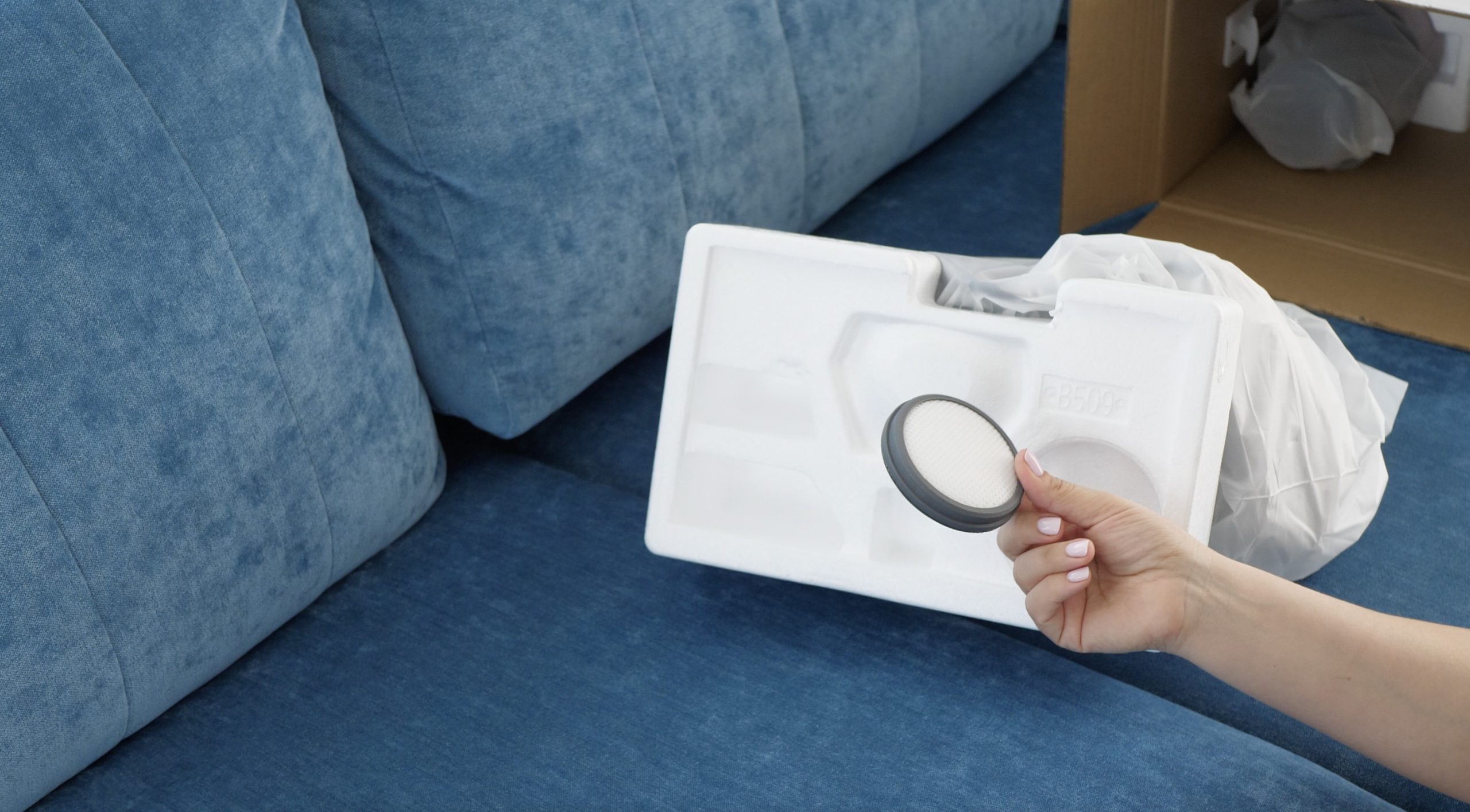 Apoi, găsim un filtru HEPA de rezervă, o perie mică pentru curățarea aspiratorului și manualul de utilizare. Practic nu trebuie decât să îl bagi în priză și e pregătit să înceapă treaba.