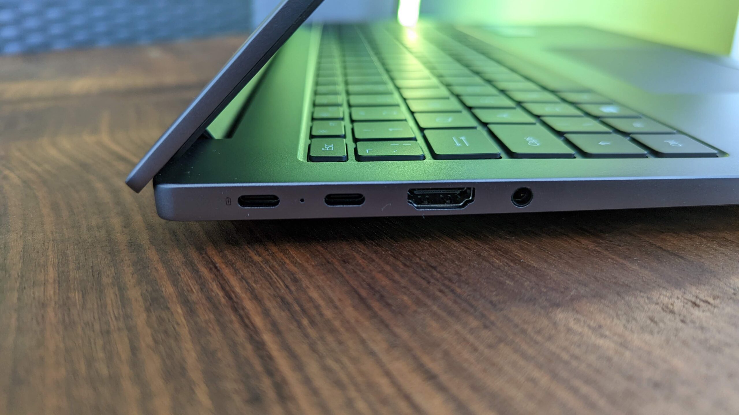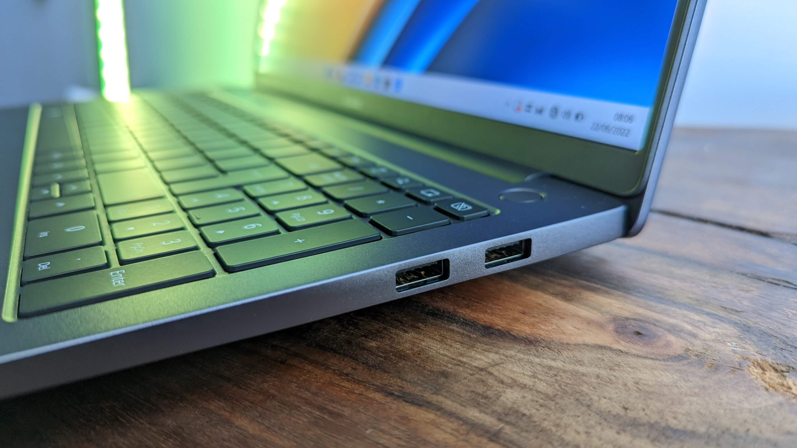 Vine cu două porturi USB-A pe laterala dreaptă și 2 de tip USB-C poziționate pe laterala stânga, ambele putând fi folosite pentru transfer de date și încărcare.Tot pe partea stângă se regăsește și jack-ul de 3,5 mm, dar și portul HDMI 2.0. Mi-ar fi plăcut să văd și un cititor de carduri aici. Mie una mi-ar fi fost super util.