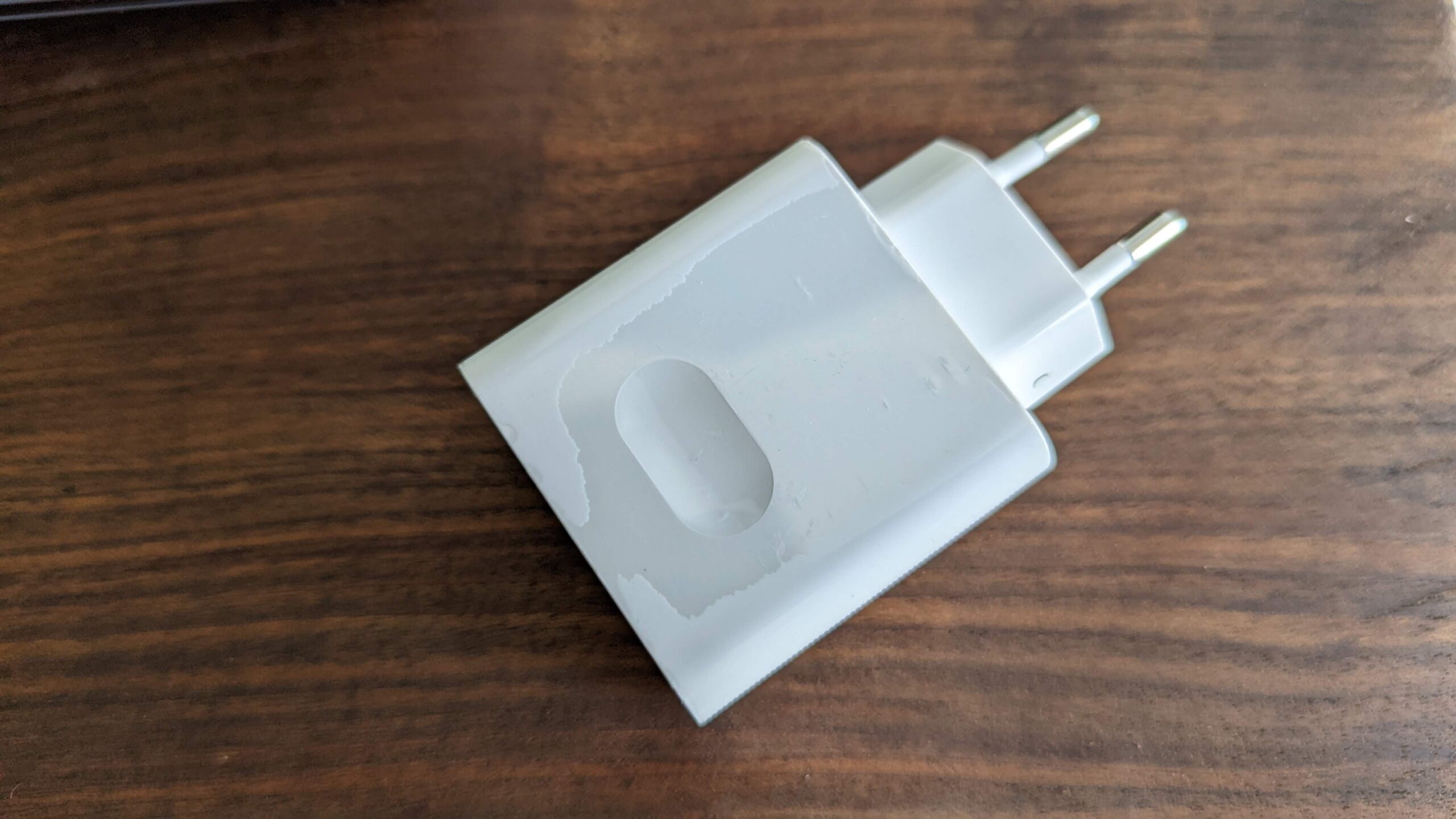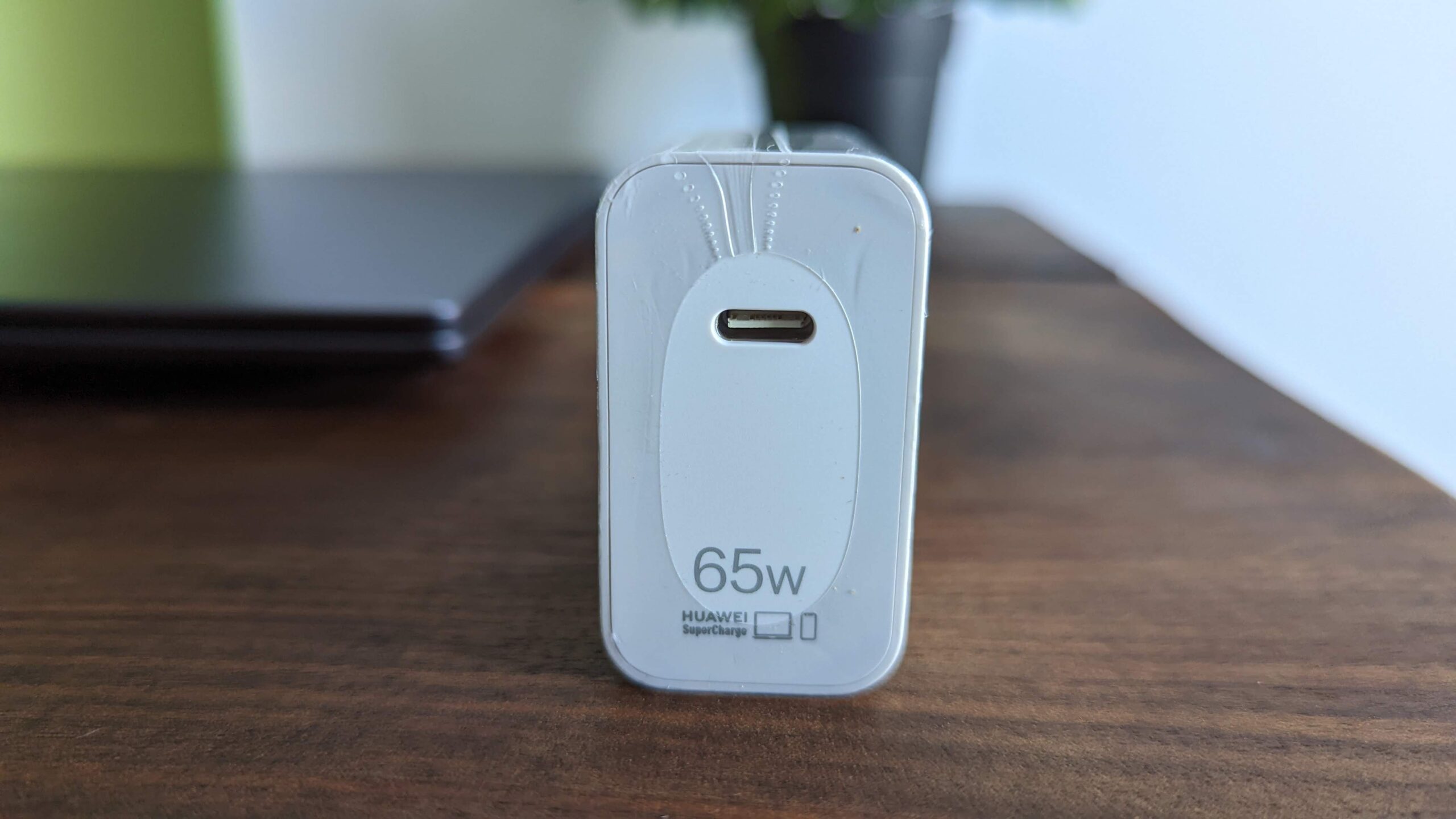 Încărcătorul de 65W este mic, compact. La prima vedere ai spune că este un încărcător de telefon.