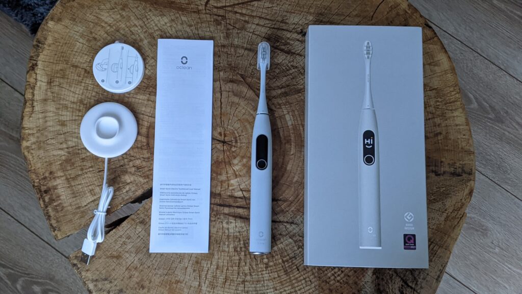 Periuța vine ambalată într-o cutie dreptunghiulară, premium. În interiorul ei mai găsim manualul de utilizare și încărcătorul wireless…da, ai citit bine, periuță care vine cu încărcător wireless. Mă întreb când voi găsi și în cutiile telefoanelor așa ceva…