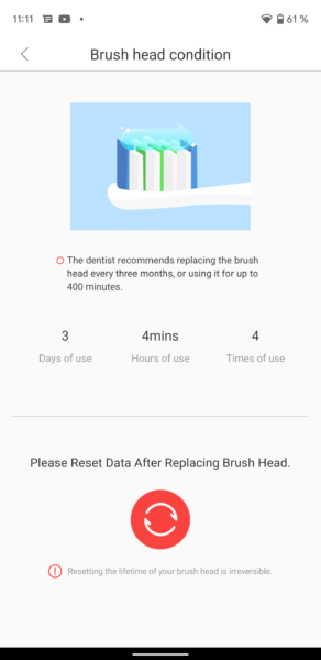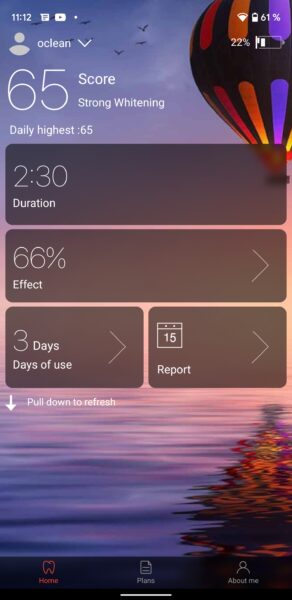 Aplicația este friendly și îți afișează în Home page câteva date importante despre utilizarea periuței. În primul rând vei vedea în colțul drept de sus statusul bateriei, după care afișează un scor cu privire la periajul efectuat, durata periajului, un alt scor pentru efectul produs, iar în momentul în care îl selectezi, ți se detaliază din ce detalii a fost alcătuit procentajul respectiv. Tot în home page vei avea și o evidență a zilelor de când folosești periuța de dinți + un calendar, care îți ține evidența perierilor eficiente și a celor ineficiente. Cât de tare e treaba asta? Acum vei ști clar când te-ai spălat corect pe dinți și când nu ai făcut-o. Totul MĂ-SU-RAT.