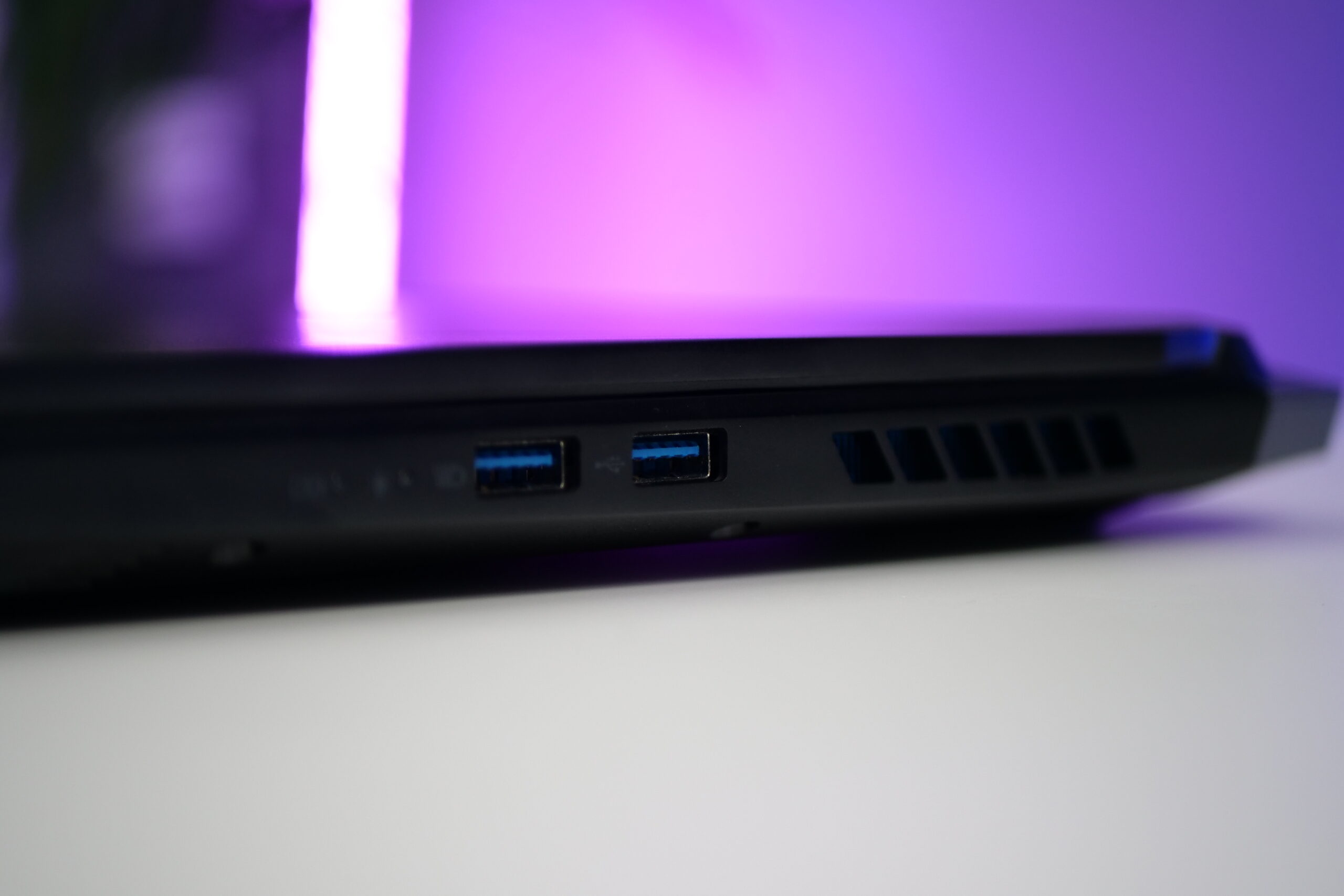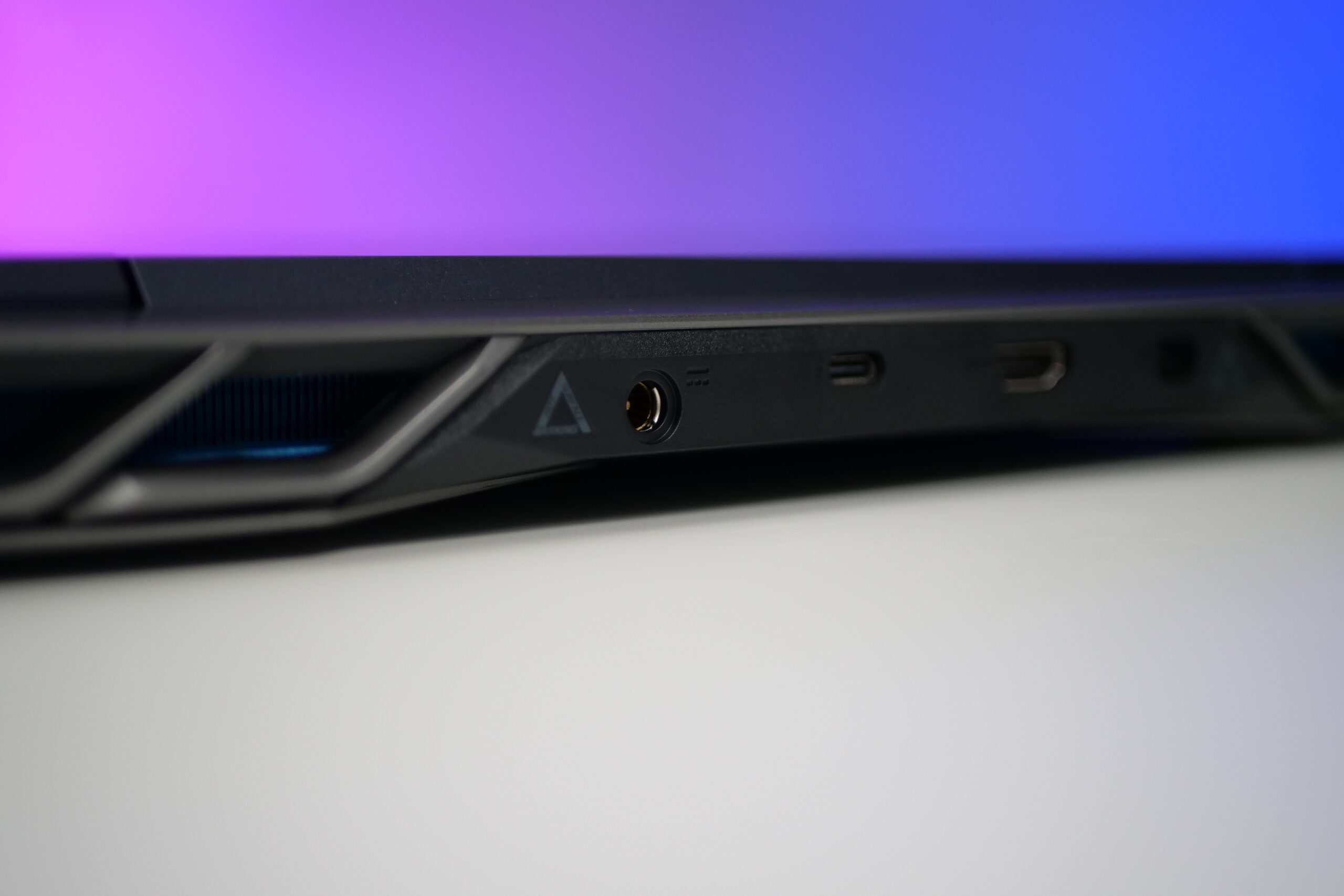 Pe laterale găsești o mulțime de porturi. Și avem așa: pe laterala dreaptă două porturi USB-A 3.2, pe laterala stângă un port Ethernet, un alt port USB-A3.2 și jack-ul pentru căști și microfon, iar pe spate găzduiește portul de încărcare, un port Thunderbolt 4 ce permite alimentarea device-ului, conectarea unui monitor 4K pentru gaming, a perifericelor, fiind totodată extrem de rapid pentru suportul de date. To aici mai avem un conector HDMI și un Mini Display Port.