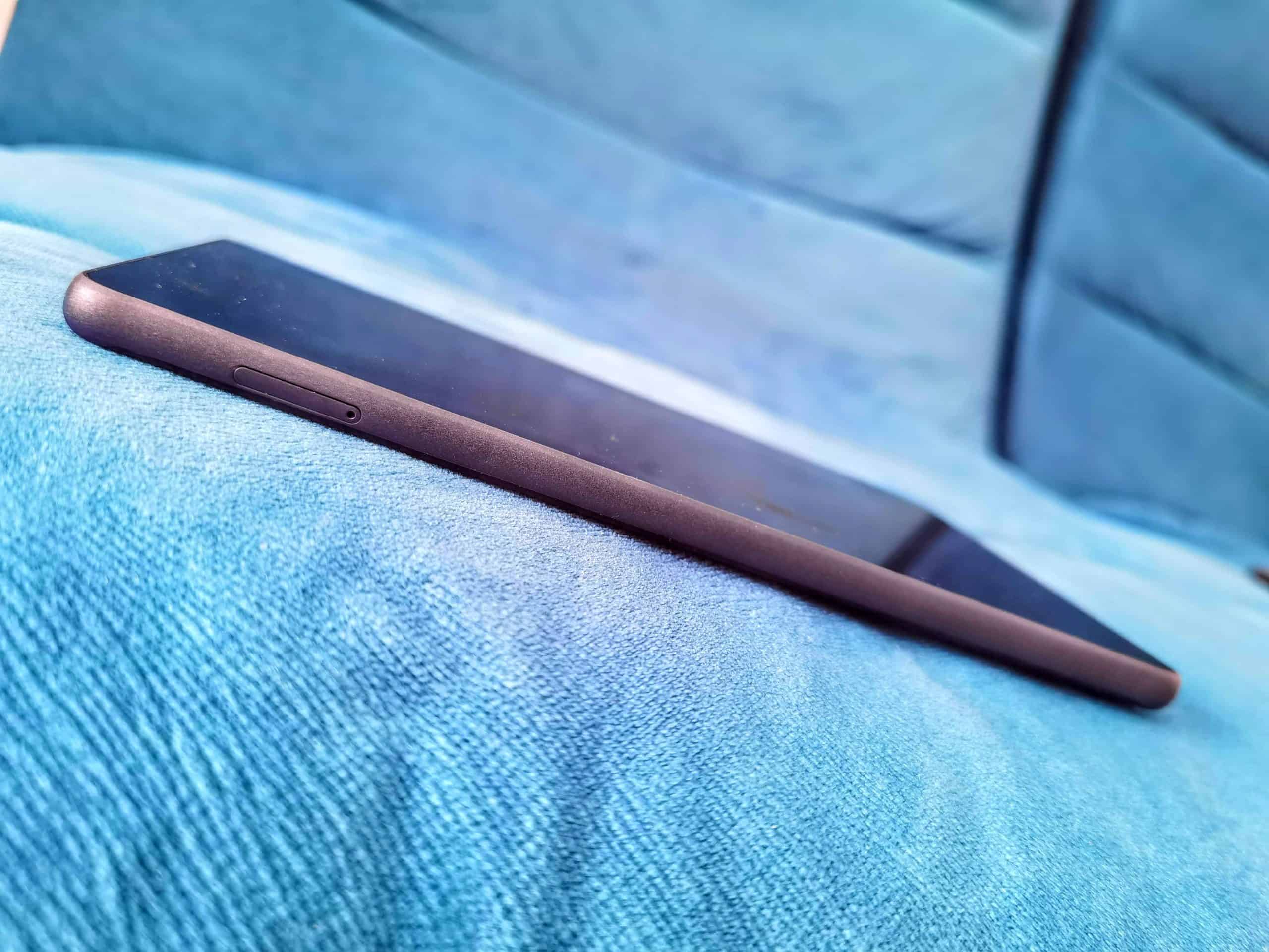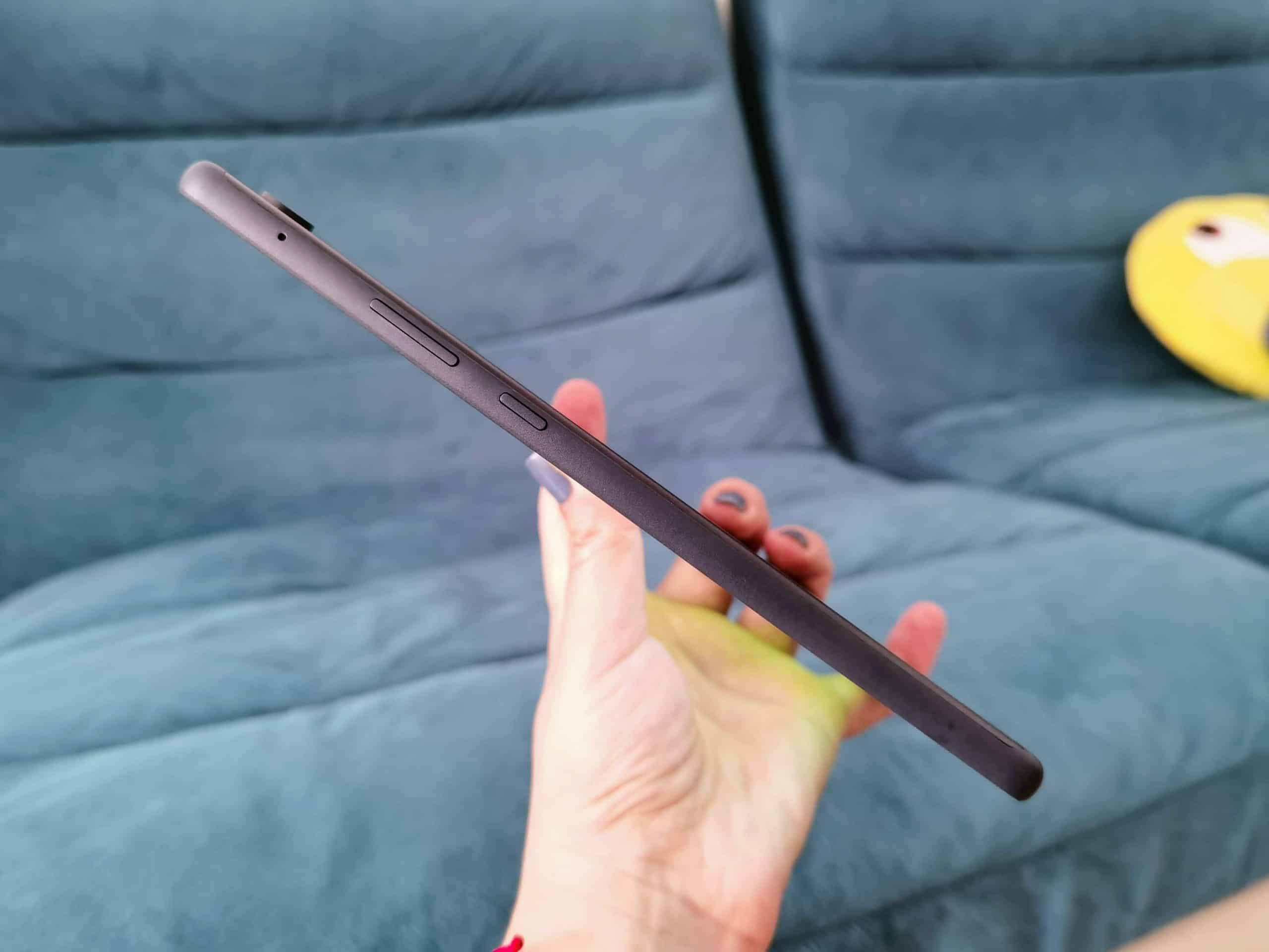 Tableta, disponibilă într-o nuanță albastră, foarte plăcută, vine cu un design modern și finisaje metalice. Are o diagonală de 8 inch, este ușurică și se așează bine în mână.