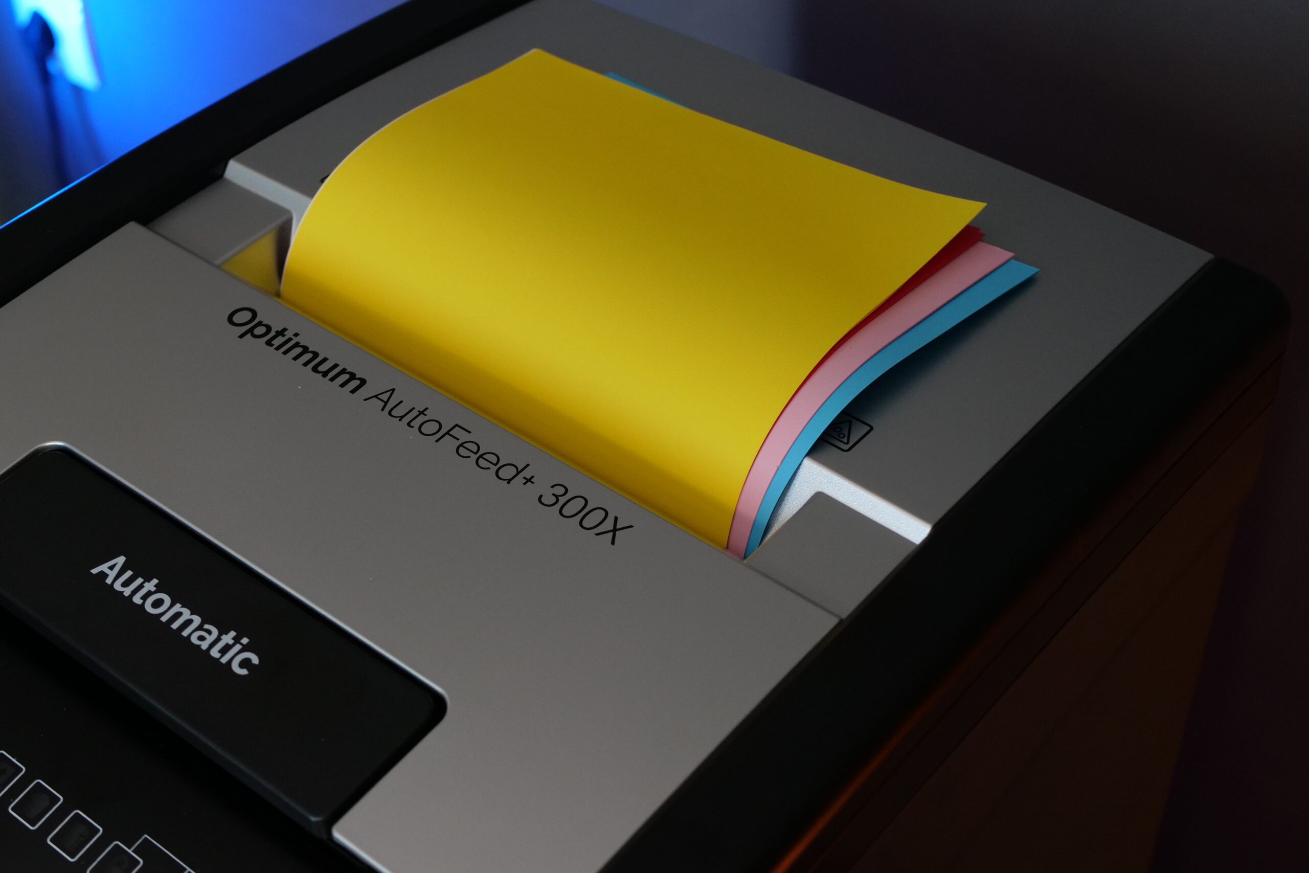 Rexel Optimum AutoFeed+ 300X – transformă în confetti documentele și cardurile bancare!