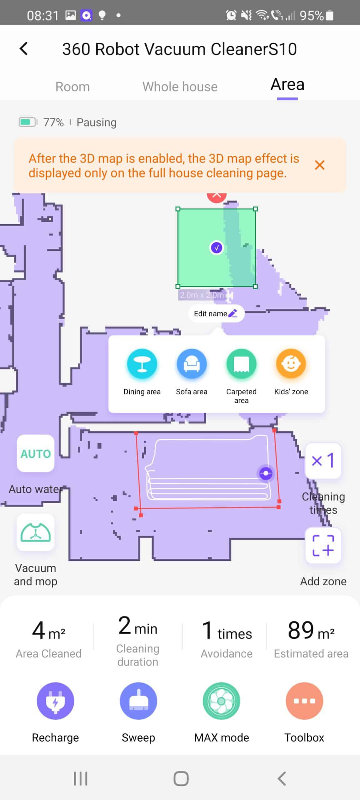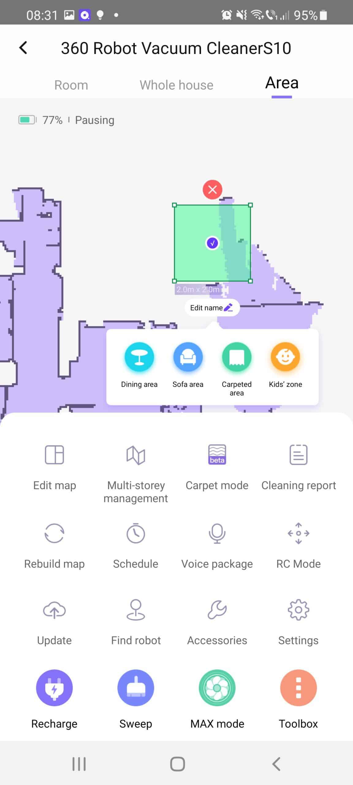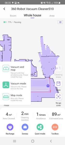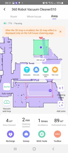 8. Vine și cu un carpet mode, care deocamdată este în beta test. Este o funcție nouă pe care o poți personaliza: poți alege să aspire de două ori covorul, să detecteze singur zonele cu covoare, să mărească puterea de aspirare. În modul mop, roboțelul știe să evite zonele cu covoare.