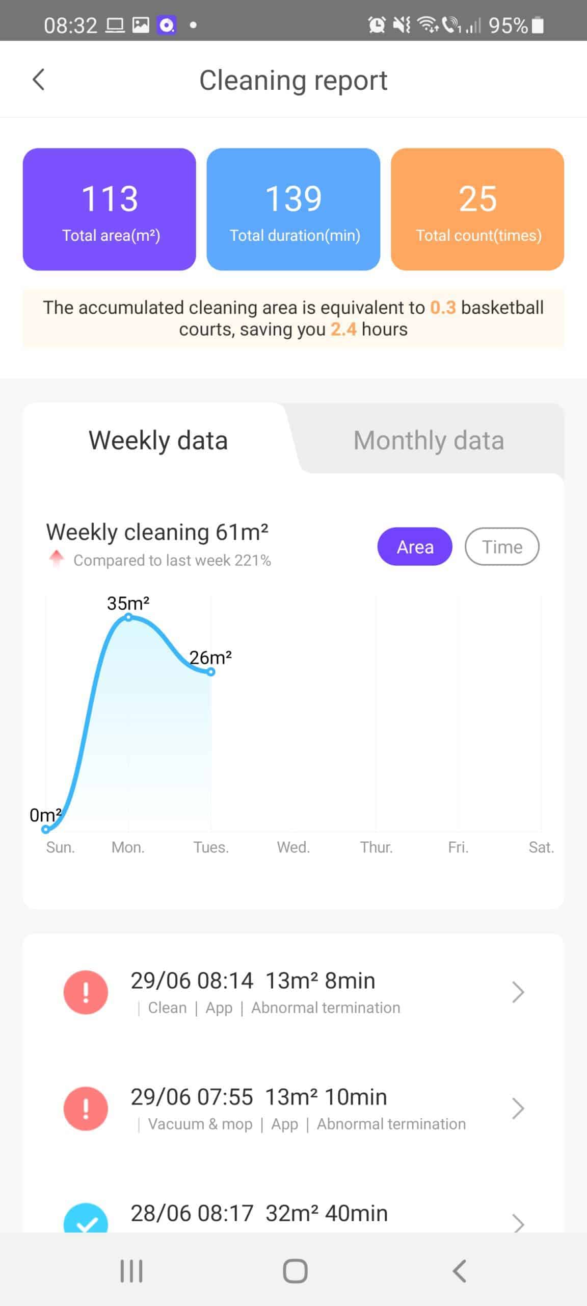 2. Aplicația arată diferit, cum o accesezi, în primă fază îți arată câteva informații importante despre roboțel: câtă baterie mai are, uzura periilor și a filtrului, când trebuie să cureți senzorii, dar și shortcut-uri pentru moduri de curățare ( întreaga casă, carpet area, sofa area)