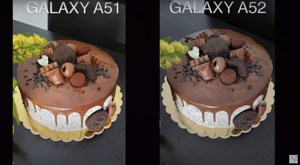 Aici avem un tort delicios care arată mult mai realist și mai bine pe A52. Și nu doar culorile sunt redate mai bine, ci avem și mai multe detalii. A51, încearcă să compenseze prin suprasaturare, însă nu reușește, căci pe A52 focalizarea este mai bună, ciocolata este mai apetisantă, iar elementele de decor mai detaliate.