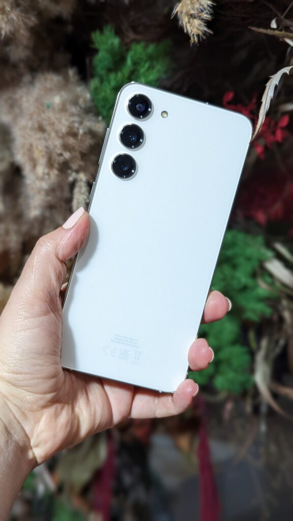 Ca și la generațiile anterioare și de această dată cele două modele seamănă destul de mult. Pe parte de design apar ceva modificări față de modelele de anul trecut. Dispare acea suprafață lucioasă care înconjura camera. Inspirat de design-ul lui S22 Ultra, de data aceasta vedem doar senzorii evidențiați pe spatele telefonului. O modificare care mie îmi place. Pare un design mai simplu, mai curat, mai fin.