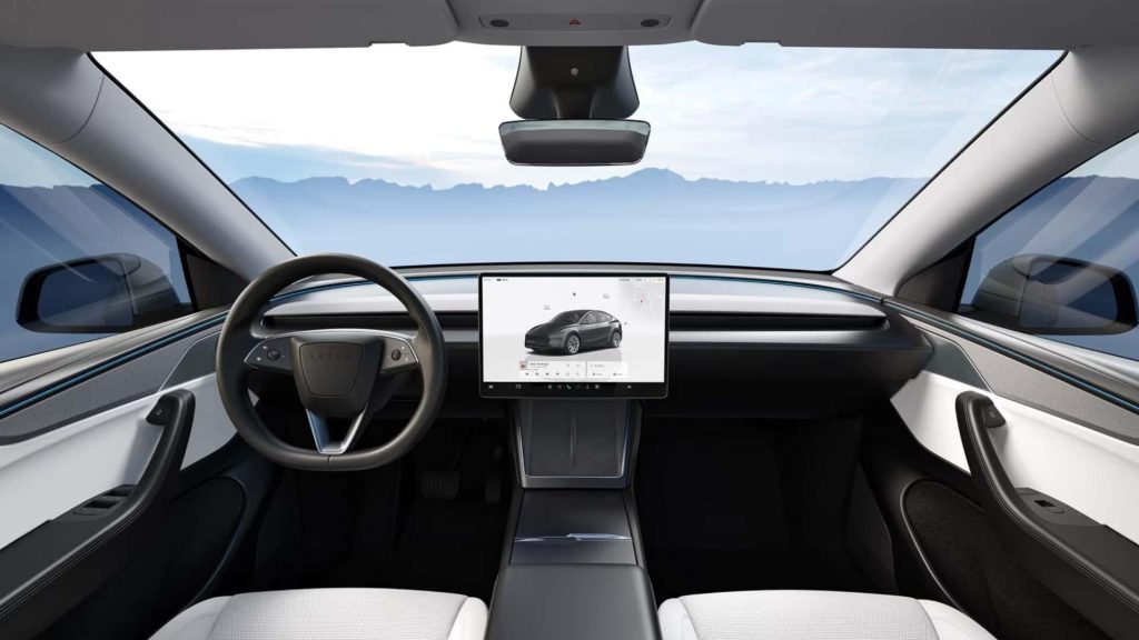 Noul Model Y prezintă un design frontal inspirat de Cybertruck, cu o bandă luminoasă care unește farurile LED mai subțiri, conferind vehiculului un aspect futurist și agresiv. Partea din spate include stopuri în formă de „C” conectate printr-o bandă luminoasă, accentuând lățimea mașinii. Sunt disponibile culori noi, inclusiv Glacier Blue, oferind opțiuni proaspete pentru personalizare.