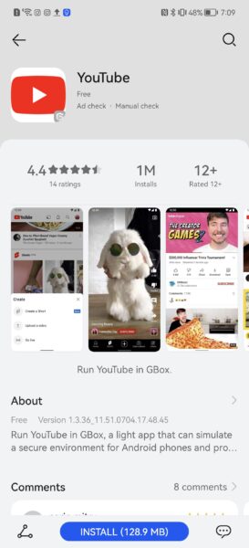 Așadar, cum e posibil să instalăm aplicațiile Google, fără să avem servicii Google și fără Gspace? Ei bine, iată cum. Cauți aplicațiile dorite în AppGallery, cum ar fi YouTube, Maps etc și vei observa cum aplicațiile acestea îți apar de îndată. În plus acum găsești și Uber sau Discord. Dai install și aplicațiile apar rapid pe telefon, gata de utilizare. Doar că lucrurile nu se termină aici. Tot acest proces se desfășoară prin intermediul GBox, o aplicație care îți permite să te bucuri de serviciile Google ceva mai facil decât ofereau Petal Search sau Gspace. Și spun asta fiindcă doar la instalarea primei aplicații ești informat că aceste aplicații sunt instalate prin intermediul Gbox, după care toate aplicațiile Google se instalează ca orice altă aplicație. Diferit ar fi faptul că apare logo-ul Gbox în partea de jos a iconițelor, ce-ți amintește că te bucuri de serviciile Google prin intermediul acestei aplicații.