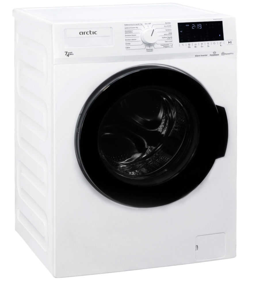 – Mașina de spălat rufe cu uscător Arctic APLWD741262WST este redusă la 1449 lei, de la 1648 lei. Are o capacitate de spălare de 7 kg, uscare 4 kg și viteză de stoarcere de 1200 rpm.