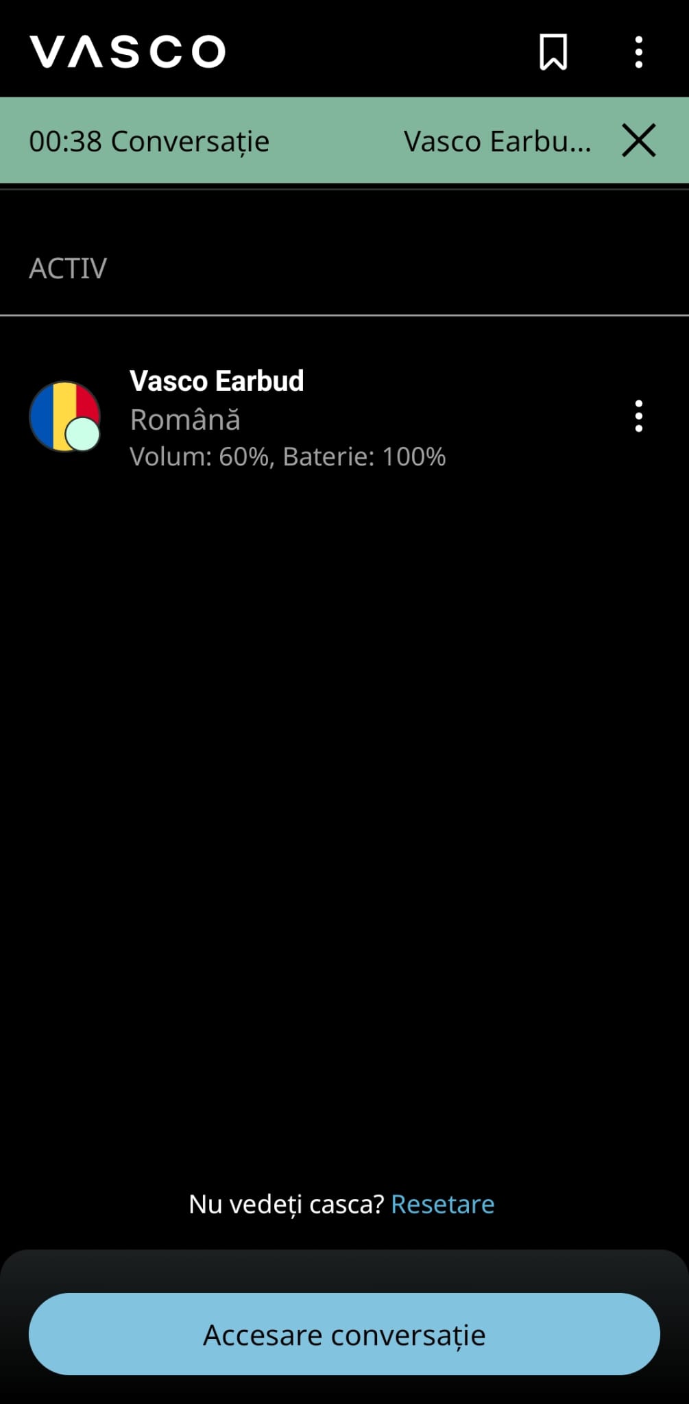 1. Instalăm aplicația Vasco Connect – Disponibilă atât pentru dispozitive iOS, cât și Android, după care asociem căștile cu telefonul nostru. Din aplicație putem configura și gestiona setările căștilor.
